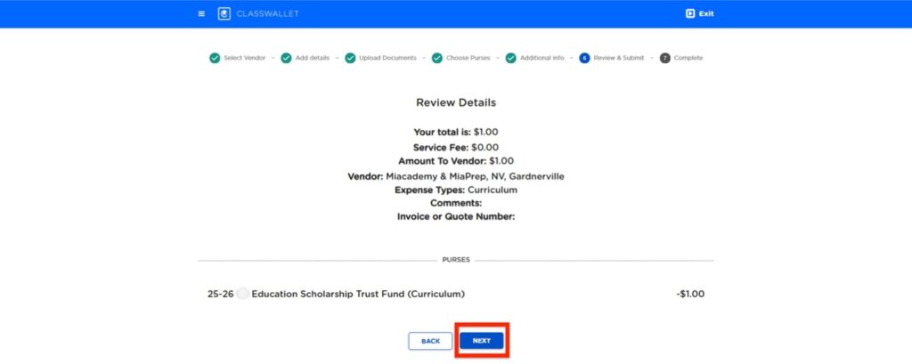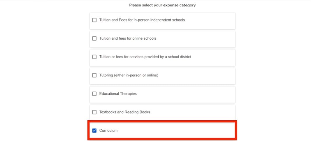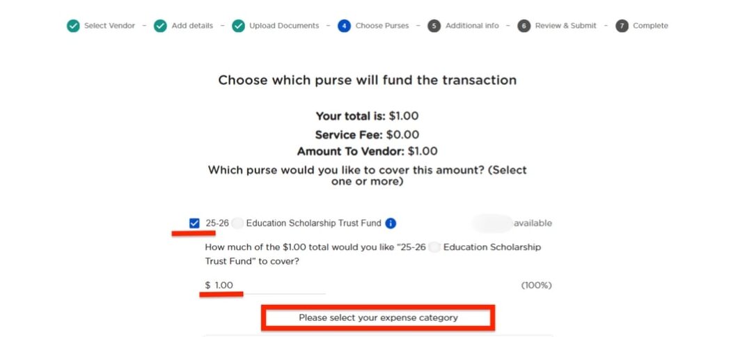 Select both the account you’d like to use funds from and your expense category. For expense category, select “Curriculum”.