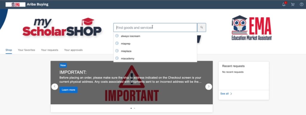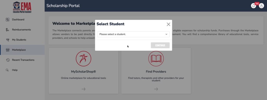 To make a purchase using the My Scholarshop state funding marketplace, please follow the steps below.